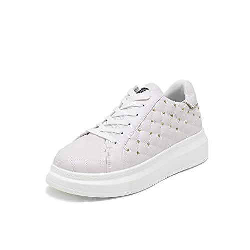 QUEEN HELENA Scarpe da Ginnastica Casual Platform Sneakers Plateau Lacci Comode Bianche Donna X25-10 Bianco 37