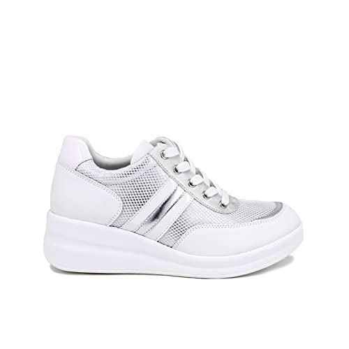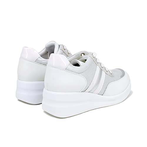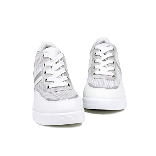 QUEEN HELENA Scarpe da Ginnastica Platform con Zeppa Alta Comode con Lacci da Passeggio Donna X26-37 (Bianco, Numeric_39)