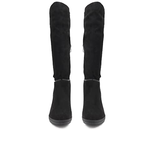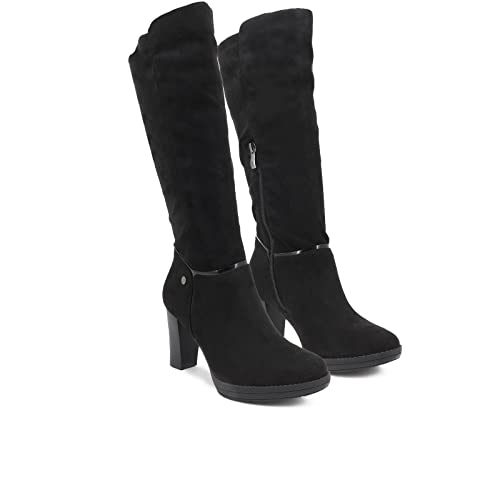 QUEEN HELENA Stivali Alti con Tacco Plateau Zip Laterale Invernali Casual Donna QH18481 (Nero, numeric_36)
