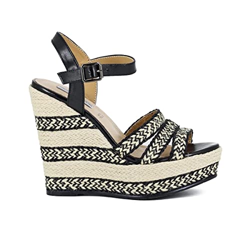 QUEEN HELENA Zeppe Sandali Alti Casual con Fascia in Punta Donna ZM8009 Nero 40