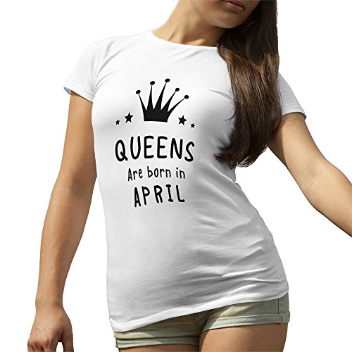 Queens Are Born in April Fun Birthday Logo Bianca T-Shirt Maglietta per Le Donne Small