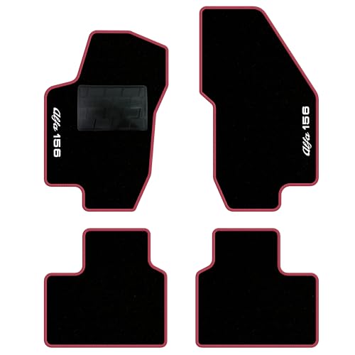 QUEMAR Tappetini Auto compatibili con Alfa Romeo 156 1997-2007 / Kit Tappeti Moquette e Gomma su Misura (Set 2 Anteriori + 2 Posteriori) / Ricami e Colori Personalizzati (2 Ricami, Bordo Fucsia)