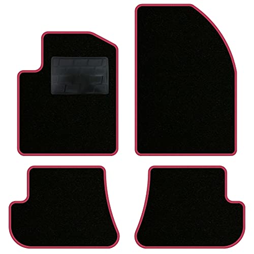 QUEMAR Kit Tappetini Auto compatibili con Ford Fiesta MkV 5 serie 2002-2008/ Set Tappeti Moquette e Gomma su Misura (2 Anteriori + 2 Poster.)/Ricami e Colori Personalizzati (0 Ricami, Bordo Fucsia)