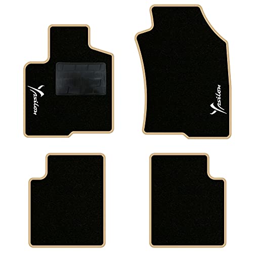 QUEMAR Tappetini Auto compatibili con Lancia Ypsilon 5 porte dal 2011 anche Hybrid/Kit Tappeti Moquette e Gomma su Misura (Set 2 Anter +2 Poster)/Ricami e Colori Personalizzati (Bordo Beige, 2 Ricami)