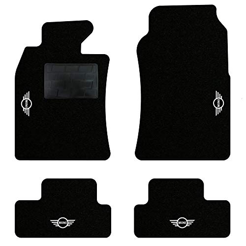 QUEMAR Kit Tappetini Auto compatibili con MINI R50 R52 Cabrio R53 2001-2007/Set Tappeti Moquette e Gomma su Misura (2 Anteriori+2 Posteriori)/Ricami e Colori Personalizzati (Bordo Nero, 4 Ricami)