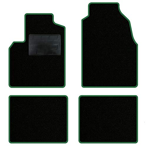 QUEMAR Kit Tappetini Auto compatibili con Panda II 2003-2011 / Set Tappeti in Moquette e Gomma su Misura (2 Anteriori + 2 Posteriori) / Ricami e Colori Personalizzati (Bordo Verde, 0 Ricami)