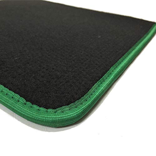 QUEMAR Kit Tappetini Auto compatibili con Smart Fortwo W451 2007-2014 / Set 2 Tappeti in Moquette e Gomma su Misura/Ricami e Colori Personalizzati (0 Ricami, Bordo Verde)