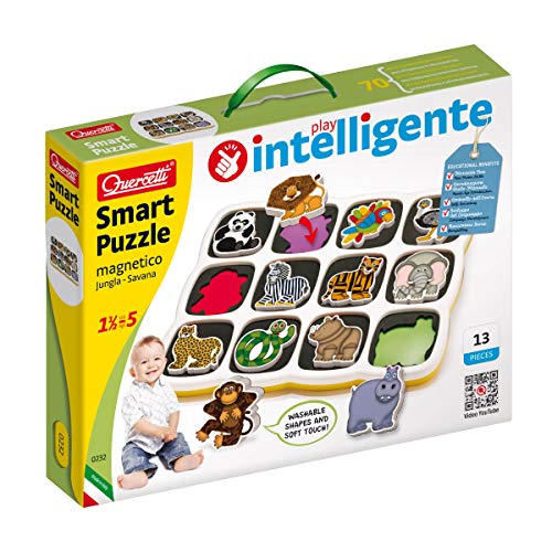 Quercetti-0232 Smart Puzzle Jungle & Savana Prima Infanzia, Gioco Magnetico con Animali, Multicolore, 0232