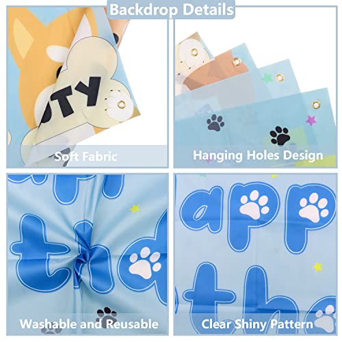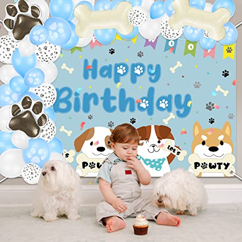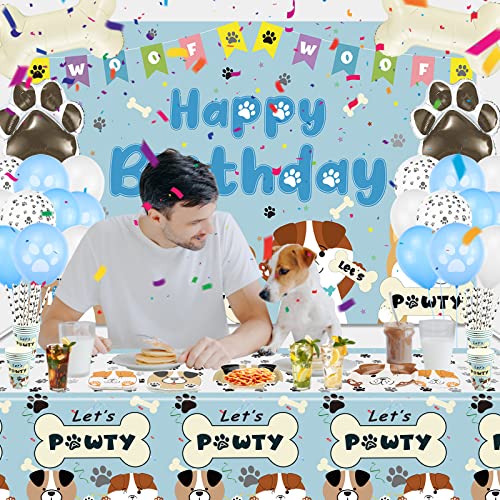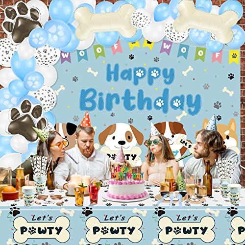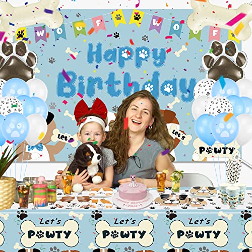 QUERICKY Forniture per feste di compleanno a tema cane per bambini, animali domestici, include sfondo di buon compleanno, piatti, palloncini, tovaglie, tovaglioli, tazze, per 20 ospiti