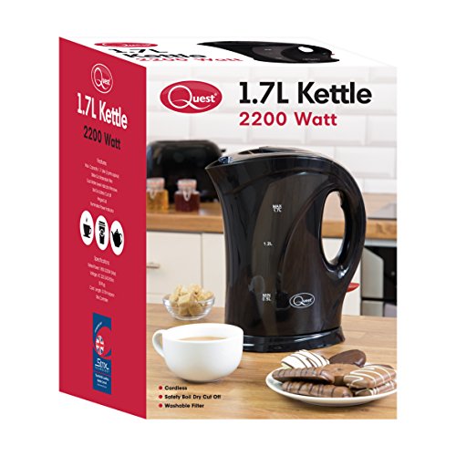 Quest - Bollitore Elettrico Cordless, funzione ebollizione rapida, 1.7 litri, 2000W, Nero