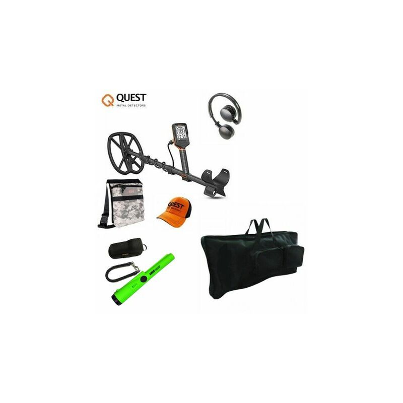 Quest Metal Detector Q 30 plus Descrizione Il metal detector Quest Q30+ utilizza durante le ricerche la frequenza 14kHz. Si monta facilmente e grazie alle tre aste componibili può essere regolato tra gli 80 cm ed i 130 cm. Il metal detector può essere utilizzato anche in acqua, è immergibile fino a 5 metri di profondità. Dispone di una piastra 11 “X 9” TurboD RAPTOR X ed una batteria al litio ricaricabile anche tramite la porta USB del computer. Il Quest Q30 permette al suo utilizzatore di regolare il volume, di regolare la sensibilità, la discriminazione dei metalli e di effettuare l'abbattimento del terreno automaticamente o manualmente. E' possibile utilizzare uno dei programmi preimpostati tra Park / Field / Wet Sand / Saltwater / Gold 1 / Gold 2 che permetteranno al ricercatore di iniziare subito le proprie ricerche con delle impostazioni standard. Nella Versione Q30+ Promo sono inclusi, xpointer Land, Copripiastra, Cuffie Wireless, Borsa Portatarget Quest, Cappellino Quest