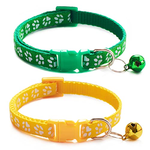 Quesuc 2pcs collari per gattini morbidi e regolabili con campana da con striscia in nylon a forma di cuore per gatti cuccioli gattini Collari per Gatti Antistrozzo con Campanellino e Fibbia Sicurezza