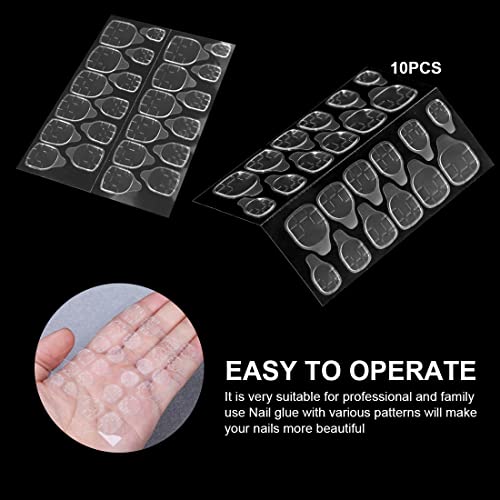 Quesuc Adesivo per colla per unghie a doppio lato Doppio Lato Colla Unghie Adesivo Trasparente Gelatina Adesivo per unghie Nastro Biadesivo Trasparente per Unghie Colla Accessori manicure (10 fogli)