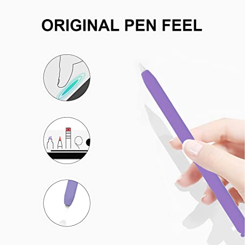 Quesuc Custodia in Silicone Compatibile con Apple Pencil 2, Porta Accessori Custodia Protettiva Antiscivolo Impugnatura per Penna Morbida e 3 Cappucci per Penna, 2021/2020/2018 (Viola e Rosa)