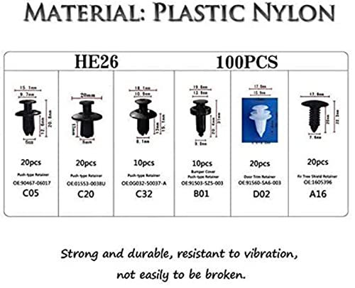 Clip universali in plastica per auto: le nostre clip in plastica sono adatte per quasi tutte le auto. Sono perfette per Peugeot, Citroën, Renault, Ford, Chrysler, Honda, Toyota, Mazda, Suzuki e altre marche.
