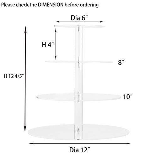 Queta - Supporto per torte a 4 piani, in acrilico, diametro di 15 cm, 18,7 cm, 22,5 cm e 26,3 cm, per cupcake, baby shower, dessert, feste, compleanni