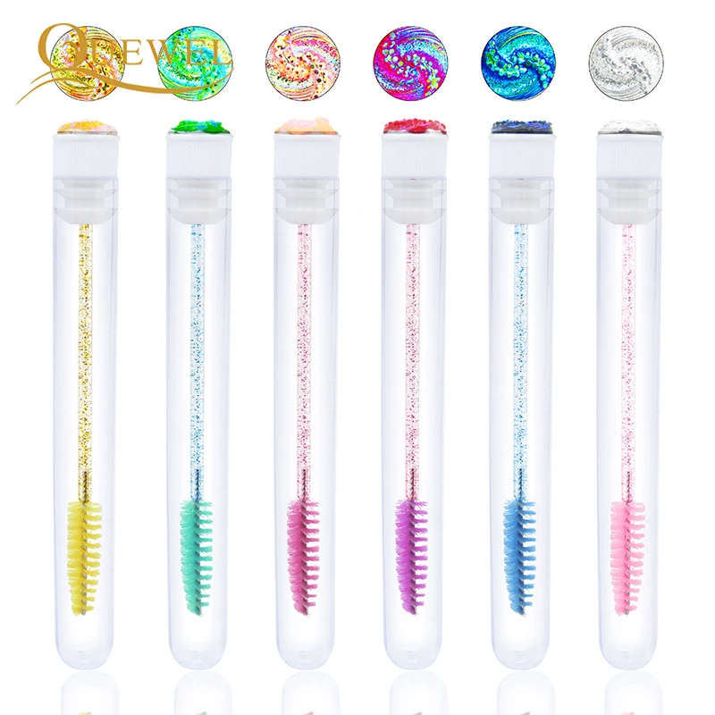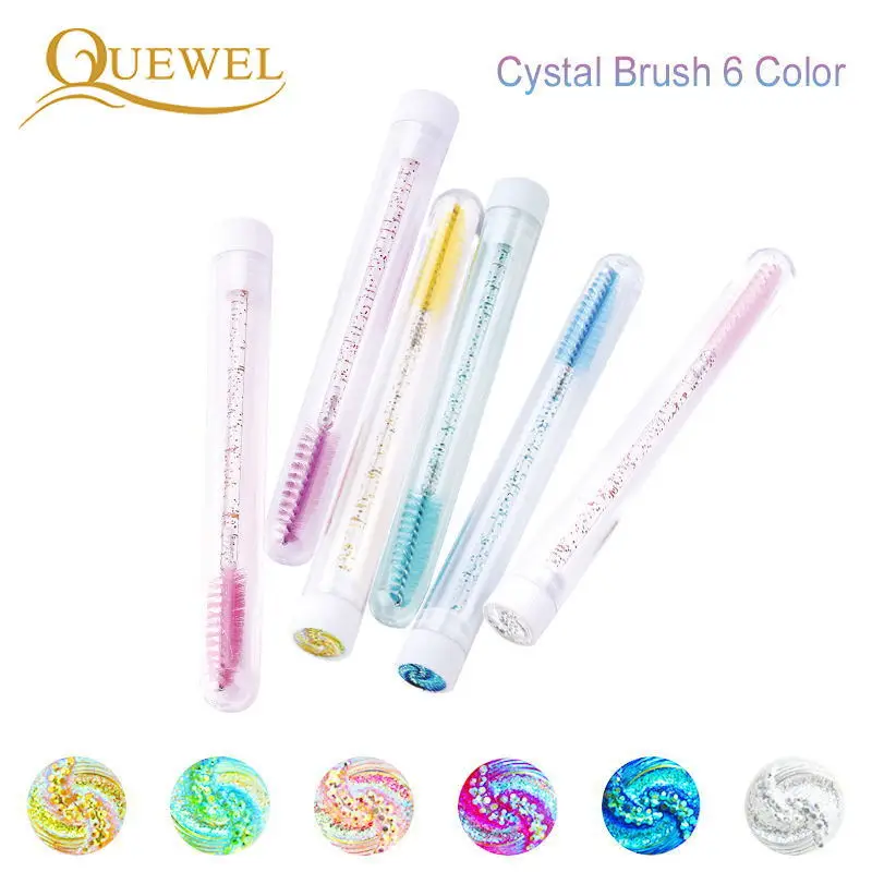 Quewel 6PCS Reusable Eyelashes Crystals Brush Disposable Eyebrow Brushes Eyelash Extension Stick Mascara Applicator Diamond Tool