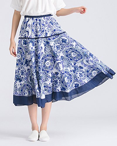 Quge Donne Elegante Gonna Lunga Boho Gonne Floreale Stampato da Spiaggia Estate