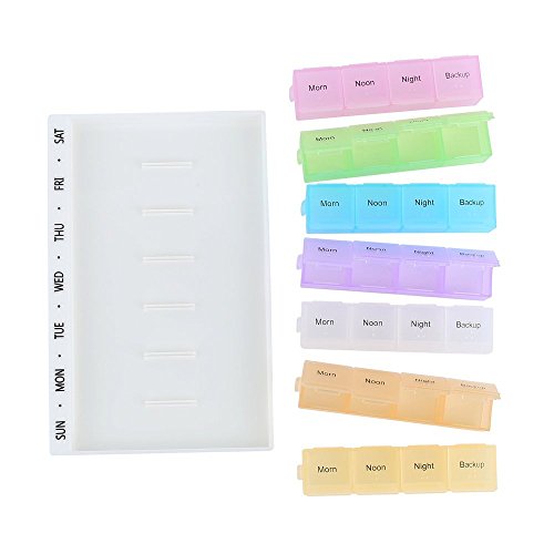 4. Fornito con coperchio a scatto che indica il giorno della settimana con la lettera. 'I coperchi sono traslucidi, così sai se lei ha preso il medicinale senza aprire il coperchio