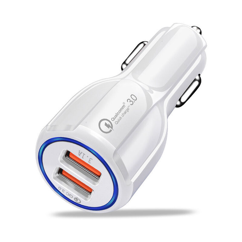 Adattatore USB per caricabatterie rapido Quick Charge 3.0 Dual Port 3.1A con cavo multi-ricarica 3 in 1 compatibile con tutti gli smartphone. Il caricabatterie per auto è realizzato con materiali resistenti alle alte e basse temperature e può essere utilizzato nell'ambiente di lavoro -20~60℃. Chip intelligente integrato e ha superato una serie di certificazioni di sicurezza per garantire la sicurezza della ricarica. Caricabatterie universale per auto con doppia USB, compatibile con tutti i dispositivi mobili Android e iOS. Fornisce la ricarica più veloce possibile per tutti i dispositivi a ricarica non rapida. Facile da collegare e scollegare, perfettamente compatibile con le prese dell'accendisigari dell'auto. Tieni presente che alcuni dispositivi mobili non supportano QC3.0. L'adattatore per caricabatteria per auto caricherà il tuo dispositivo alla massima velocità di ricarica supportata dal dispositivo.