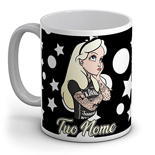 Quickgadget Idea Arredo Casa Regalo Tazza Principessa Tattoo Alice Tatuata, Personalizzato con Nome