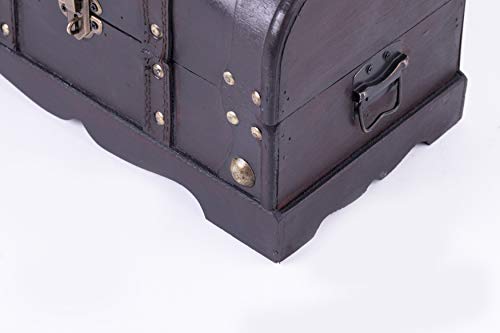 'Circa Dimensioni: 12 "x 6,8" X 6,8 ^ può essere utilizzato per stoccaggio o decorazione ^ Materiale: legno e ecopelle ^ Colore: Ciliega ^ antico decorativa ceppo di legno, foderato Caratteristiche interni e blocco serratura