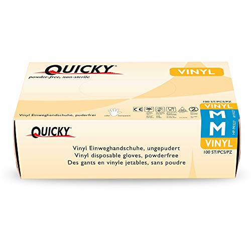Quicky guanti guanti da esame, in vinile, taglia M, a norma AQL 1.5 standard [10 confezioni da 100 pezzi, colore: Bianco