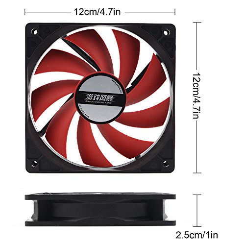 Quiet Edition 120mm Case Fan, Big 4 Pin & 3 Pin Connector for Mining Rig Case Open Air Frame, CPU Coolers,Radiators System (Red, 5 Piece)