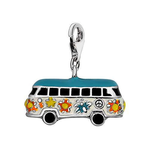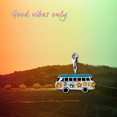 Quiges Donna Charm Ciondolo Placcato Argento Autobus Hippie per Bracciali e Accessori