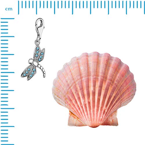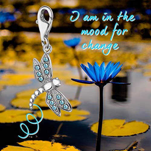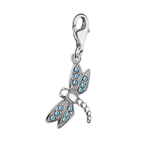 Quiges Donna Charm Ciondolo Placcato Argento Libellula con Zirconia Blu per Bracciali e Accessori