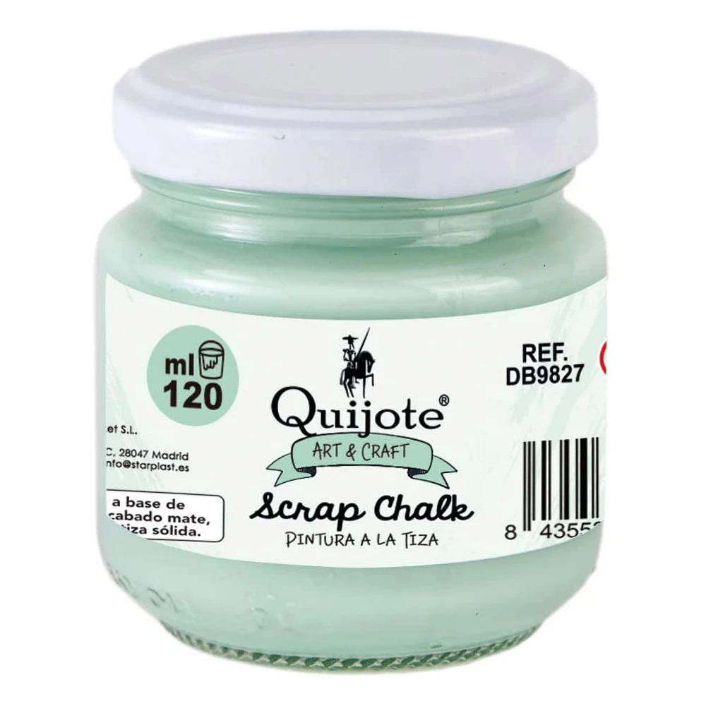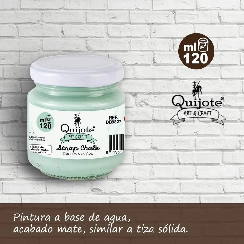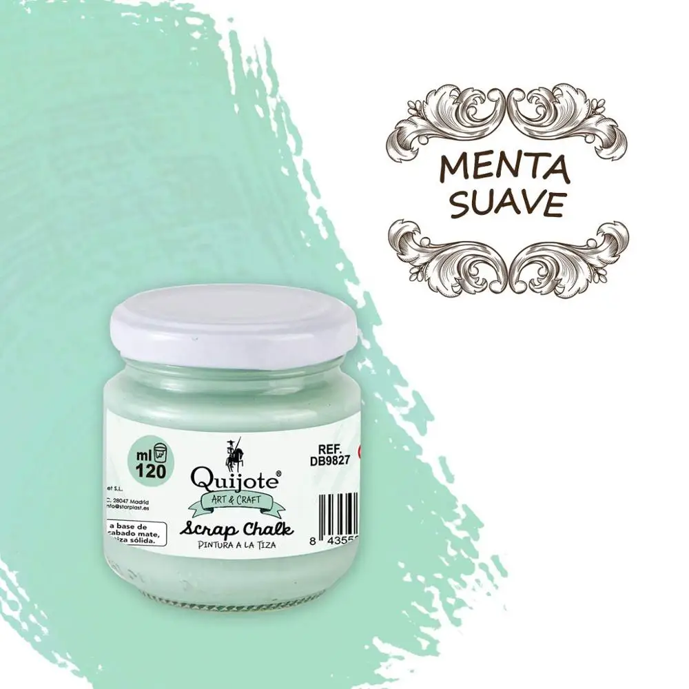 Quijote Paper World, Chalk painting, Scrap Chalk, water Base, 120ml and 30 ml, for wood, Metal, ceramic. Soft mint
