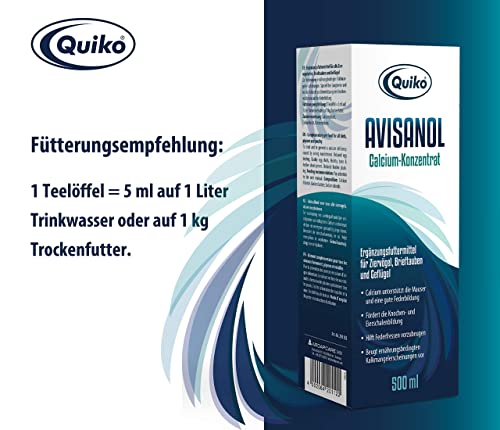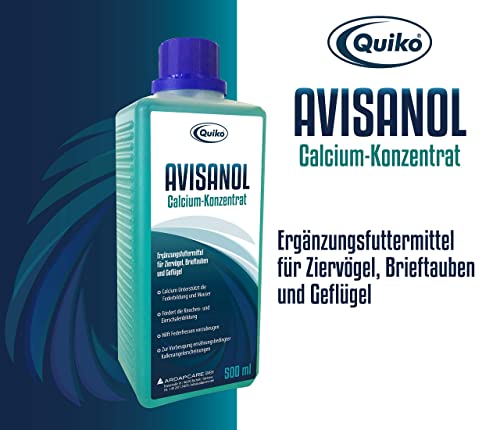 Quiko Avisanol Concentrato di Calcio 500ml per Uccelli Domestici, piccioni da Corsa e polli Promuove la Formazione di Ossa e gusci d'uovo Supporta la Formazione delle Piume e la Muta