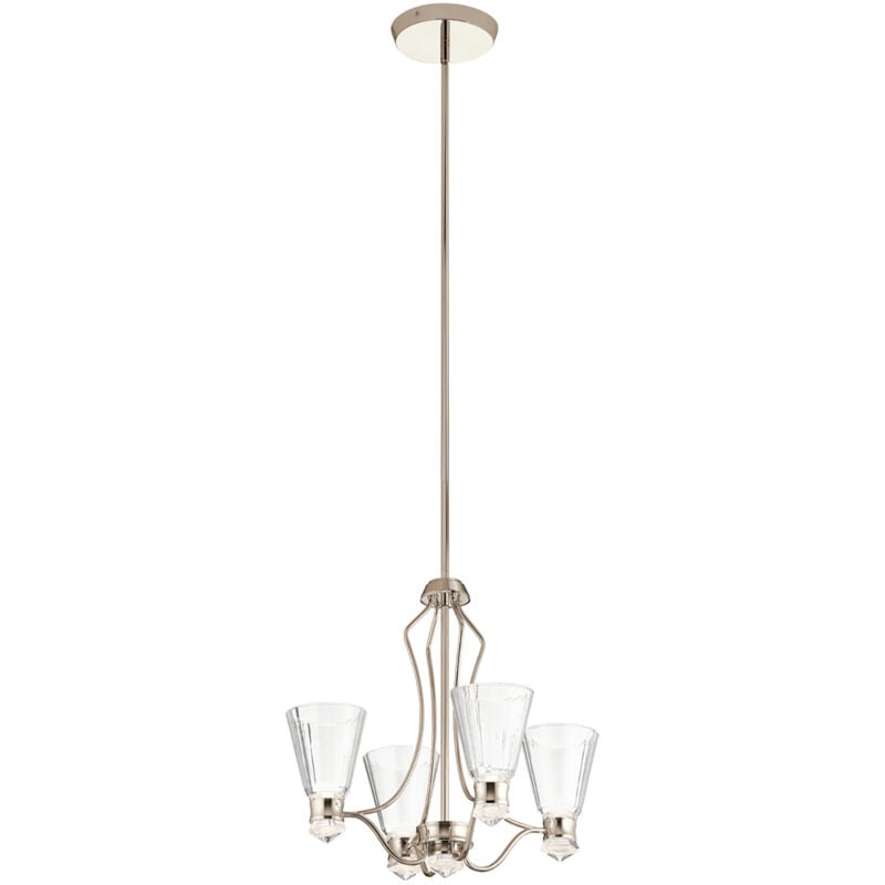 Collezione Kayva MERCATO A PARIGI Lampadario a 9 luci LED e 4 bracci. Ispirata ai decanter in vetro vintage trovati nei mercati delle pulci di Parigi. La serie Kayva, con tecnologia LED dimmerabile incorporata, irradia eleganza francese combinando linee eleganti con vetro sfaccettato trasparente e finitura in nichel lucido per uno stile tradizionale aggiornato. Kayva è classificata IP44 e può essere utilizzata in bagno.