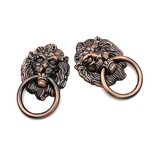 Quiodok Dylan-EU 6 Pezzi Maniglia a Tiretto del Cassetto Retrò Maniglia Testa di Leone Maniglia Del Cassetto in Lega di Zinco per Mobili da Cucina Armadio Cassettiera Comodino - Bronzo Rosso