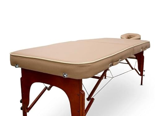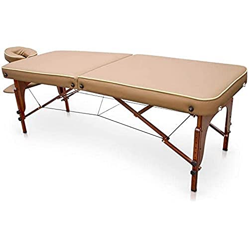 Quirumed Barella da massaggio per SPA, portatile, in legno, color sabbia, legno verniciato, ecopelle, imbottitura ad alta densità, altezza regolabile, pieghevole, testa rimovibile, fino a 210 kg