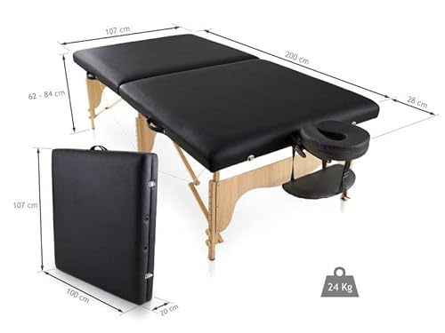 QUIRUMED Barella pieghevole in legno, tipo BOBATH, 200 x 107 cm, larghezza speciale, colore nero, similpelle, portatile, testa rimovibile, altezza regolabile, fino a 180 kg