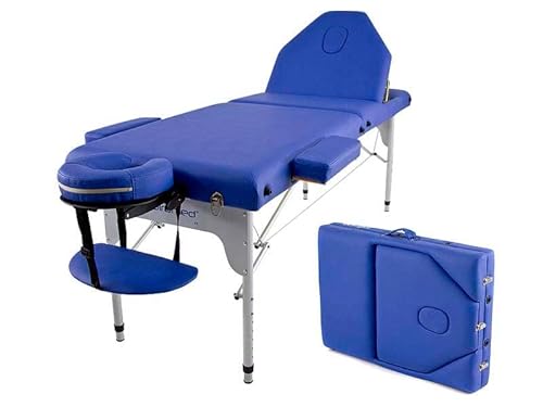 QUIRUMED Elite Lettino da Massaggio Pieghevole in Alluminio, 186 x 66 cm, Colore Blu, Lettino da Massaggio, Similpelle, Imbottitura ad Alta Densità, Leggero, Regolabile in Altezza