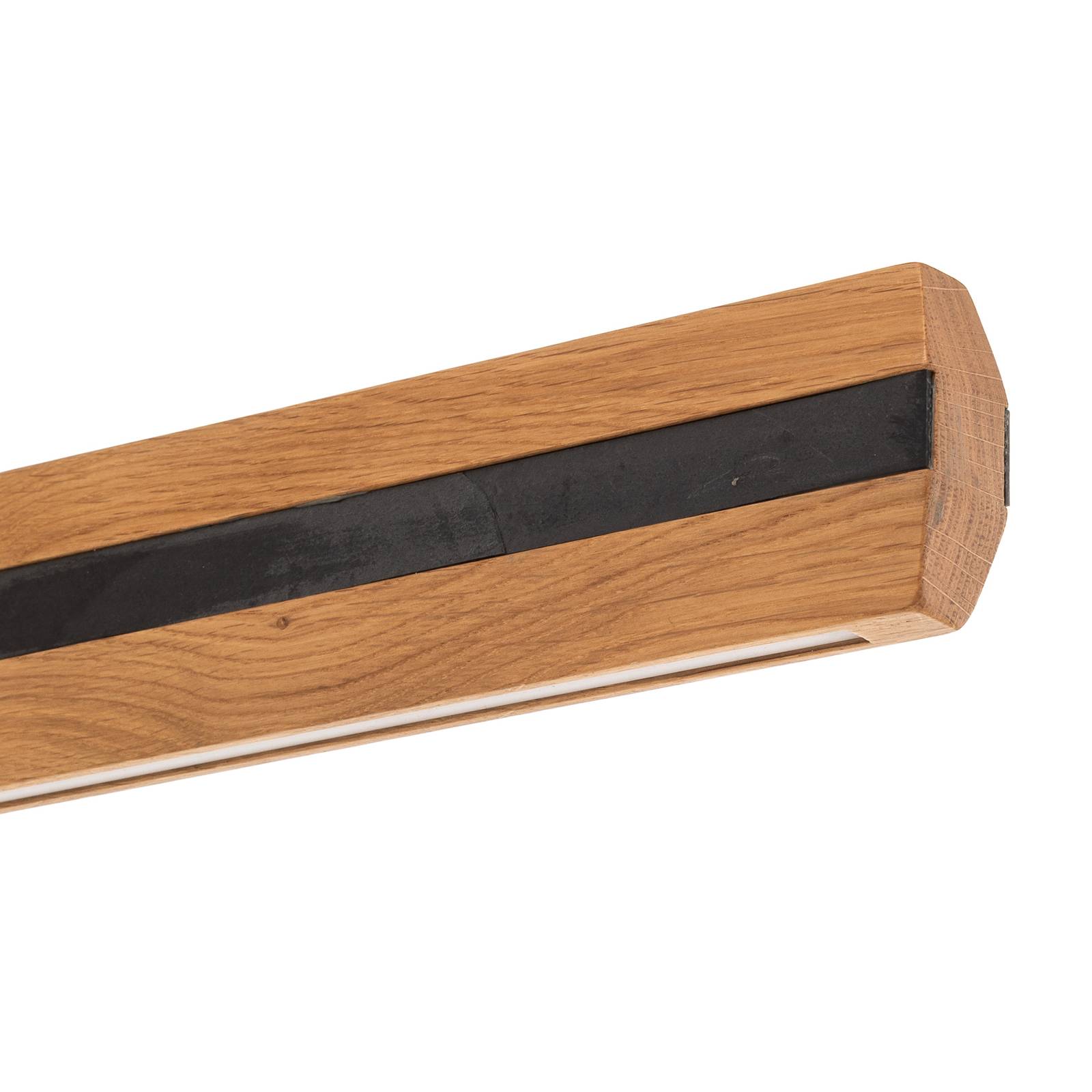 Lampada a sospensione Elis LED in legno di quercia con illuminazione verso l'alto e verso il basso La lampada a sospensione Elis LED è realizzata in legno di quercia chiaro e presenta una striscia decorativa in alluminio nero al centro del paralume. Il legno caldo conferisce un tocco accogliente e naturale all'ambiente. La striscia nera decorativa completa il look con un accento moderno. La superficie è stata elaborata a mano. Elis è adatta per illuminare, ad esempio, il soggiorno, la sala da pranzo o il tavolo della cucina. La luce calda viene fatta sia verso il pavimento che verso il soffitto, creando un bellissimo effetto di illuminazione nella stanza. Con un apposito dimmer di fase è possibile regolare la luminosità al livello desiderato. È possibile regolare anche l'altezza della lampada a sospensione. Dimmer di fase compatibili: - BERKER 2874 - Busch 65234 - GIRA 238500 - JUNG 225TDE
