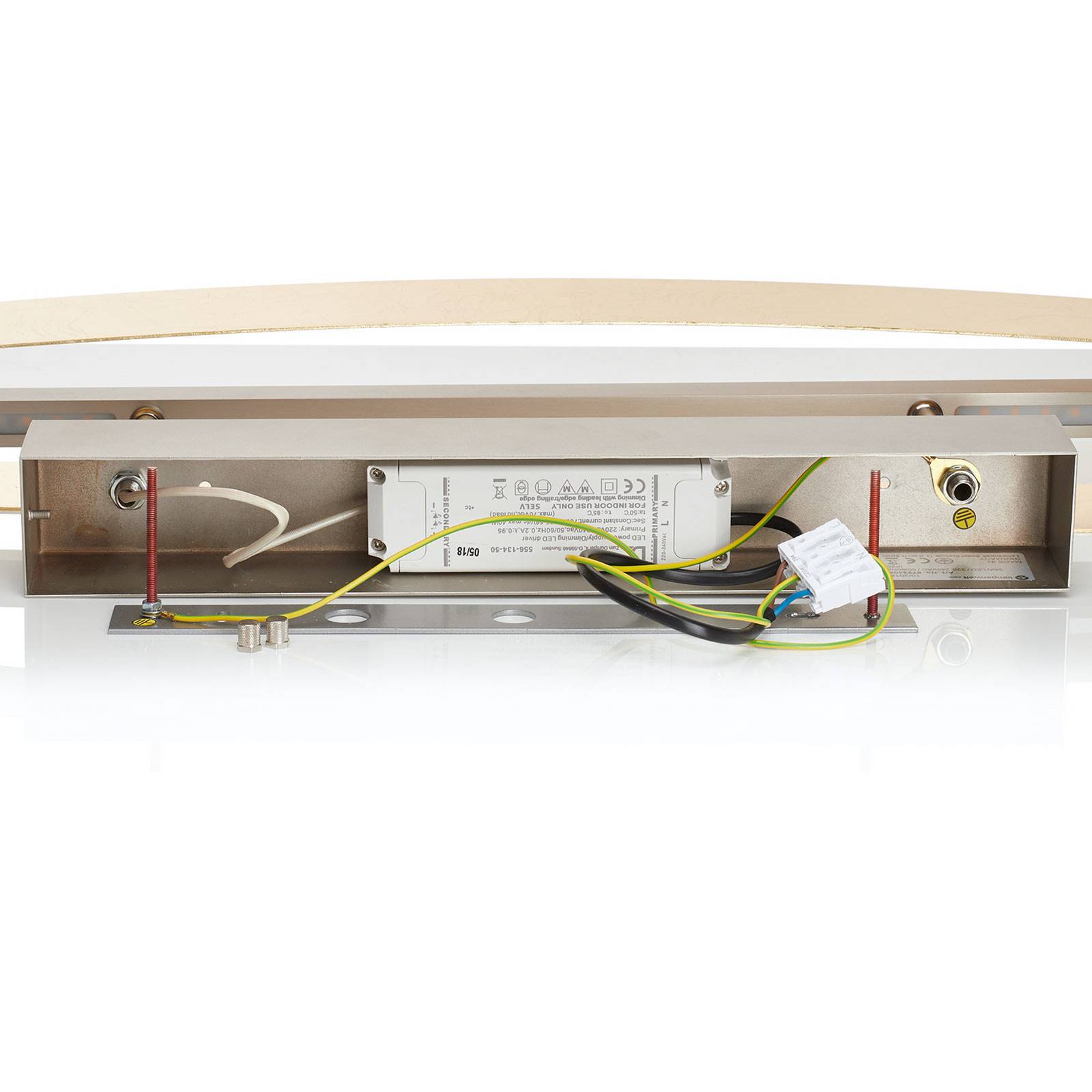 Made in Germany - esclusiva plafoniera Lian con LED dimmerabili Come un elegante oggetto di design a forma di anello, la plafoniera LED Lian decora ogni soffitto. Anche quando è spento, l'apparecchio attira tutti gli sguardi perché la caratteristica superficie dorata strutturata e lucida del corpo dell'apparecchio cattura immediatamente l'attenzione. Lian è un oggetto di illuminazione per gli amanti dell'arte di design esclusivo e colpisce sia per la sua eccezionale finitura che per l'eccellente effetto luminoso che avvolge ogni spazio abitativo in una bella atmosfera. Metallo martellato di alta qualità e accogliente luce LED - questa è la combinazione che dà a questa plafoniera il suo carattere inconfondibile. Due pannelli in alluminio avvolgono elegantemente la sorgente luminosa centrale - un profilo stretto con LED integrati che irradiano la loro luce sia verso l'alto che verso il basso. La superficie dorata del metallo battuto, che riflette in modo ottimale la luce incidente, si distingue per la sua struttura superficiale irregolare, che è il risultato della speciale lavorazione del metallo battuto. La struttura differisce da apparecchio a apparecchio, in modo che ogni prodotto sia unico. Anche in termini di funzionalità ed effetto luminoso, questo apparecchio da soffitto a LED supera molti altri prodotti di illuminazione. Oltre all'eccellente indice di resa cromatica dei LED (CRI > 90), l'interazione tra uplight e downlight crea un'illuminazione olistica della stanza sia direttamente che indirettamente, dando alla stanza un effetto di profondità senza precedenti. Per coloro che lo preferiscono un po' più accogliente, tutto ciò che serve è un dimmer esterno (un dimmer di fase leading-edge o trailing-edge), che viene collegato all'apparecchio di illuminazione, e la luminosità di Lian può essere modificata come desiderato - in modo continuo! Un prodotto di qualità fatto in Germania.