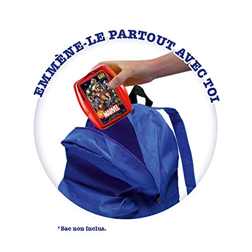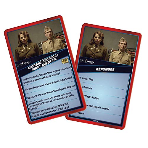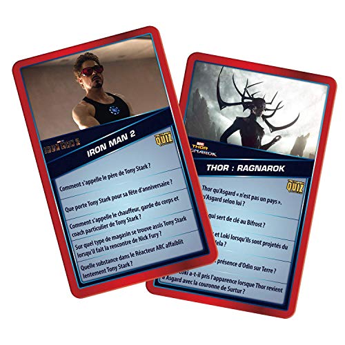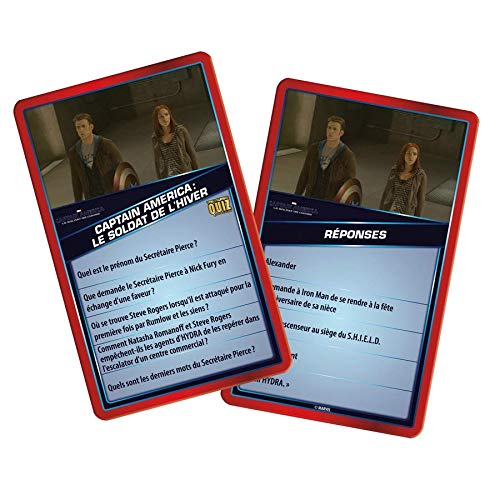 Contenuto: 100 carte domande risposte sul tema dei film Marvel, regole del gioco, scatola portaoggetti e di trasporto.
