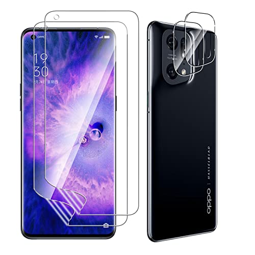 QULLOO Pellicola Protettiva per OPPO Find X5 5G + Pellicola Fotocamera Posteriore, [2 Pezzi + 2 Pezzi] Flessibile TPU Pellicola Protettiva Anti-Impronte Protezione Schermo - Transparent