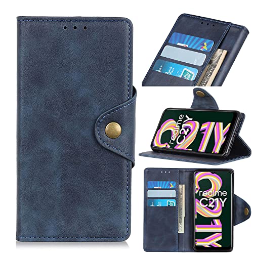 QULLOO Protettiva Custodia per Realme C21Y / C25Y,Protezione Cover a Libro Custodia in Pelle Magnetica per Realme C21-Y (Blu)