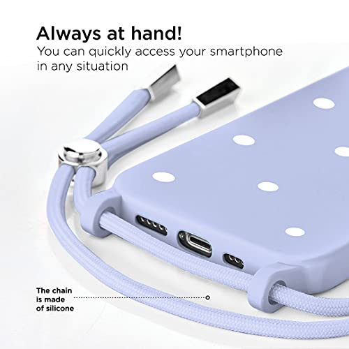 QULT Custodia per telefono con cordino - Custodia per telefono per iPhone XR - Custodie per iPhone in silicone antiurto e resistente - Verde con pois viola pastello