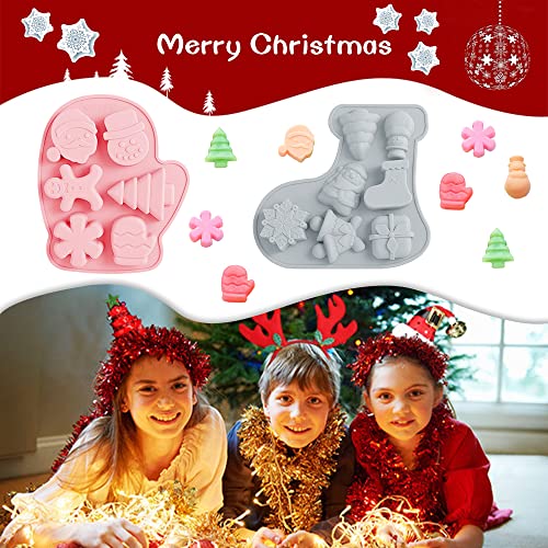 QUMENEY Set di 2 stampi per muffin in silicone di Natale, Babbo Natale, pupazzo di neve, albero di Natale, campana bassa, motivo torta fatta a mano, stampo per cioccolato