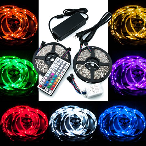 QUMOX 10m (5m x2) 1000CM 5050 SMD RGB 300 LED striscia + 44 tasti di telecomando a raggi infrarossi + 12 V Trasformatore 60W di potenza