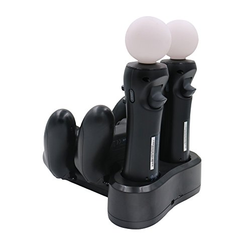 QUMOX 4 in 1 USB Doppio Bacino del Caricatore per PS4 Controller PS Move Nero