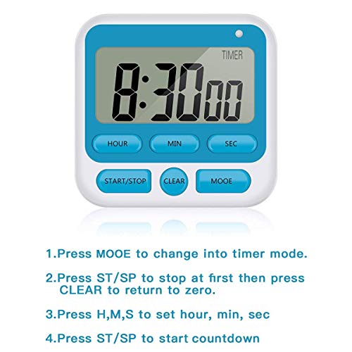 Design di funzioni multiple: 3 modalità di funzionamento selezionabili in base alle tue esigenze: modalità orologio, modalità timer (conto alla rovescia / conto alla rovescia) e modalità sveglia. Perfetto per cucinare, cuocere al forno, arrostire, barbecue, giochi a tempo, attività in classe, giochi sportivi, yoga e studio.