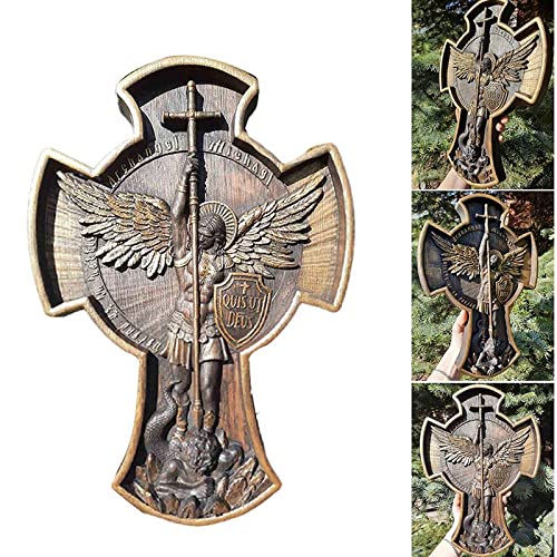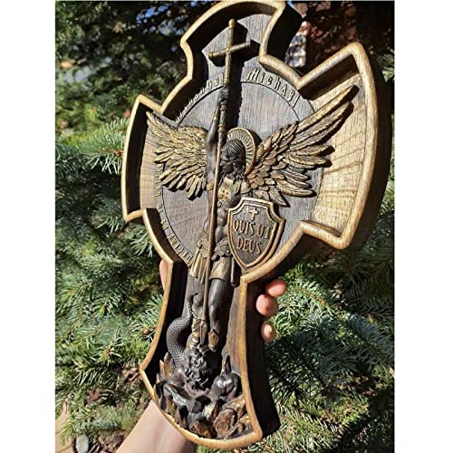 Qundkouy Arcangelo Michele legno naturale intagliato religioso cristiano regalo in legno floreale intagliato legno naturale figurine artigianali