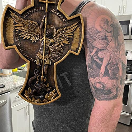 Statua Arcangelo Michael di alta qualità: la statua Arcangelo Michael è realizzata a mano in resina naturale e l'esterno è dipinto a mano. il colore è pieno e l'immagine è vivida è durevole non peggiorerà, non perderà la sua vera forma, non sarà obsoleto e durerà una vita.
