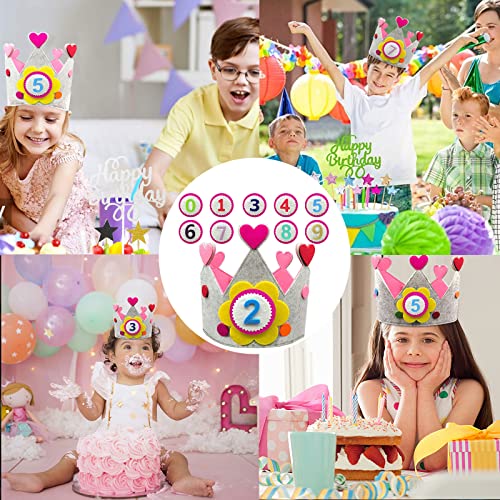 Qunkun Corona di compleanno per bambini, corona di compleanno in feltro, corona di compleanno per ragazze, in tessuto con numeri intercambiabili da 0 a 9 (rosa)